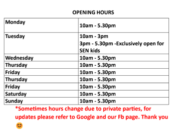 Regular time From 10:00 am to 5:30 pm. (Please check our Facebook and Google page to get updated times for the Day)
