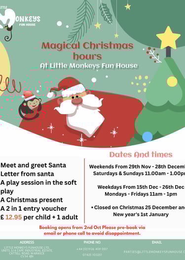 Take a peek at what’s coming up at Little Monkeys Fun House! From gentle seasonal fun to themed play days and holiday surprises, there’s always something lovely in store. Keep an eye on our events and come make happy memories with your little ones.